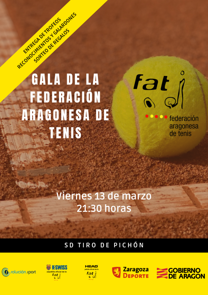 El próximo viernes 13 de marzo se celebra en la S. D. TIRO DE PICHÓN, la Gala anual del Tenis Aragonés con entrega de trofeos, reconocimientos y galardones y finalmente el tradicional sorteo de regalos.